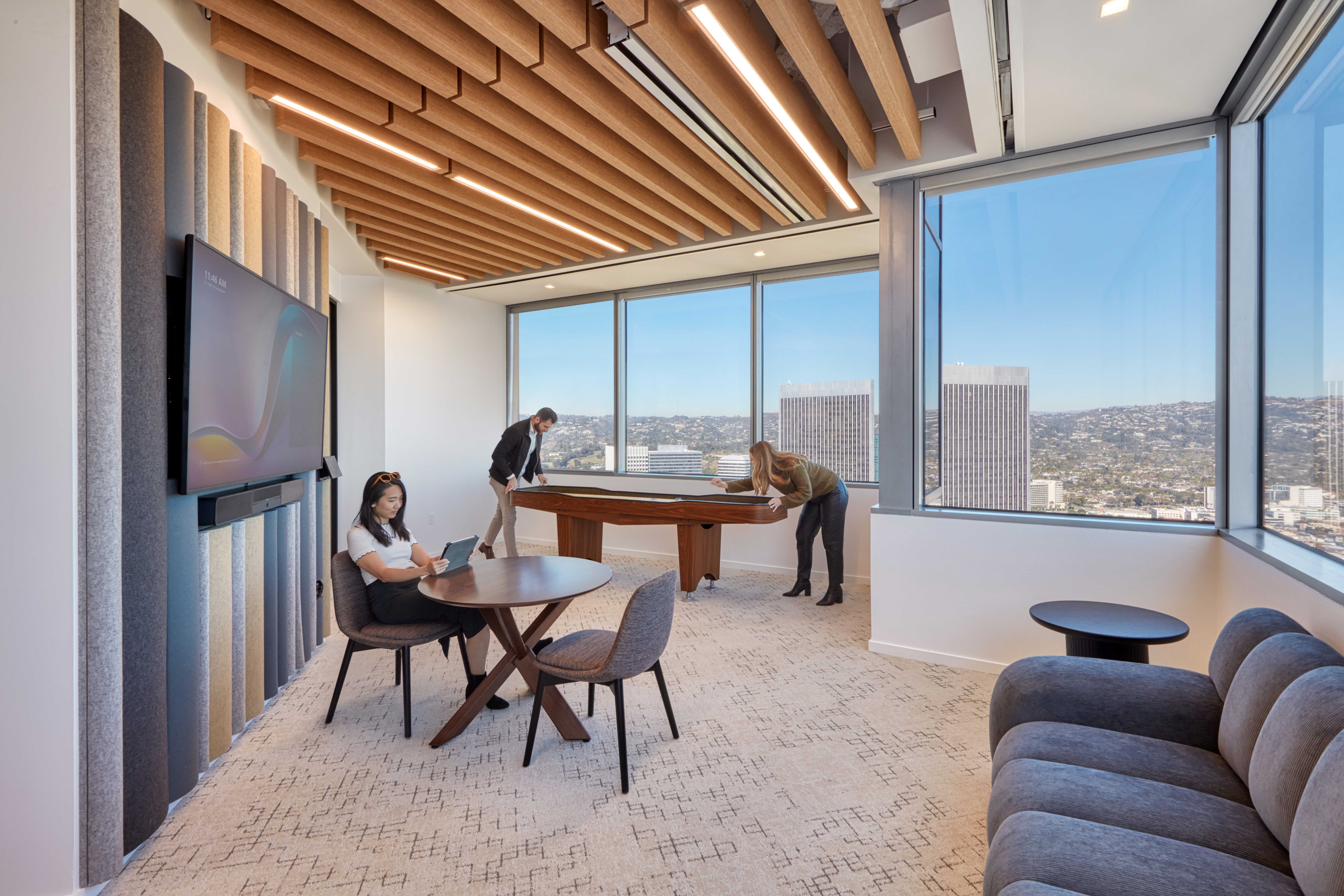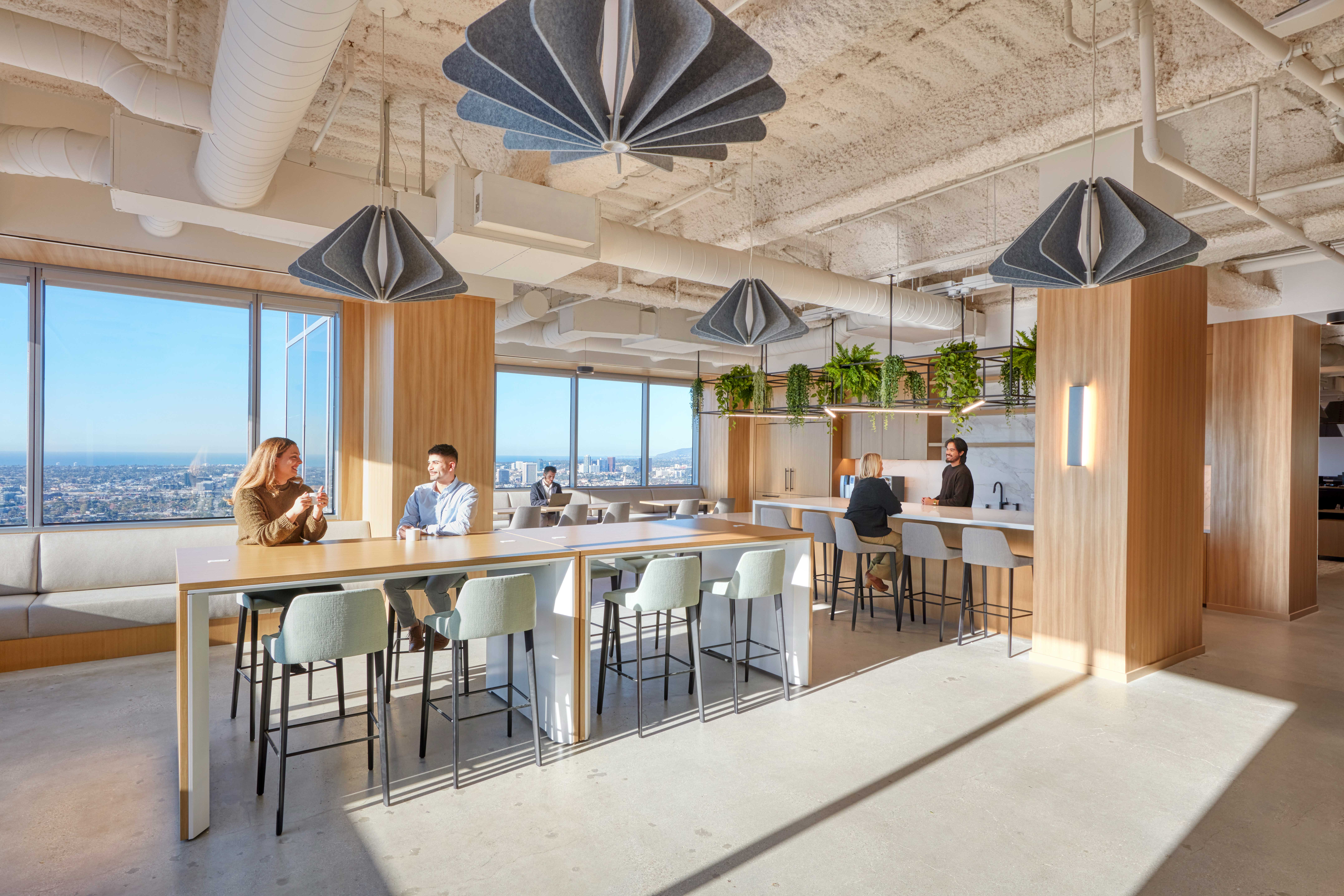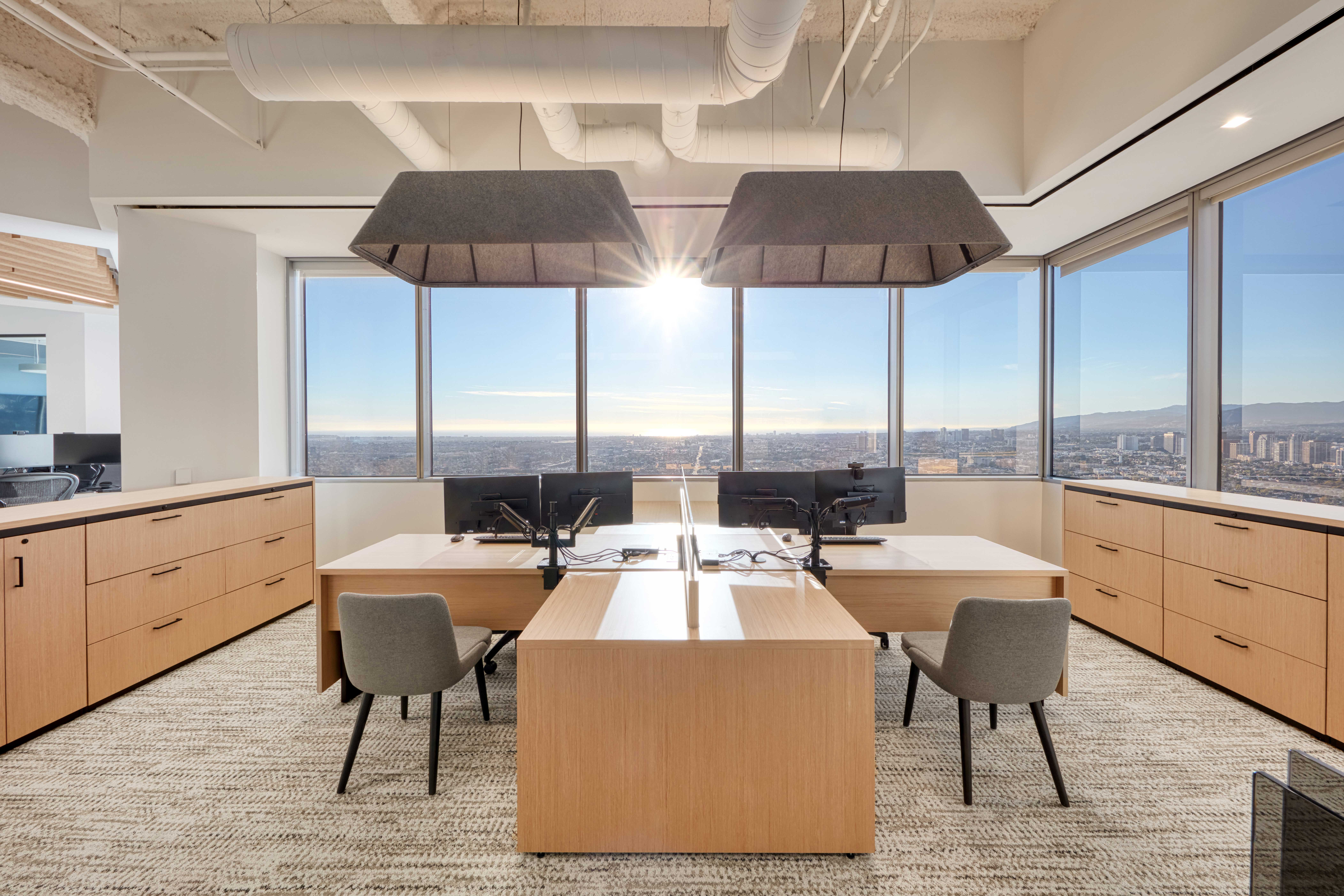 This project is a tenant improvement of an existing full-floor suite. This space includes, a full-service kitchen, offices, an executive conference room, high-end finishes, wood-slat ceilings, and custom millwork. In additional, the interior construction included mechanical, electrical, and plumbing upgrades and modifications and upgrades to the fire alarm and sprinkler system.