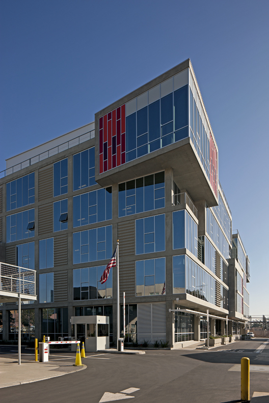 Ground-up construction of a new five-story poured-in-place concrete building designed for creative office use and certified LEED Gold. The building includes one level of underground parking with 37 parking spaces, high-efficiency turbo-core air conditioning, an emergency generator for building resilience, a rainwater filtration system, and a water feature that enhances the overall site experience.
