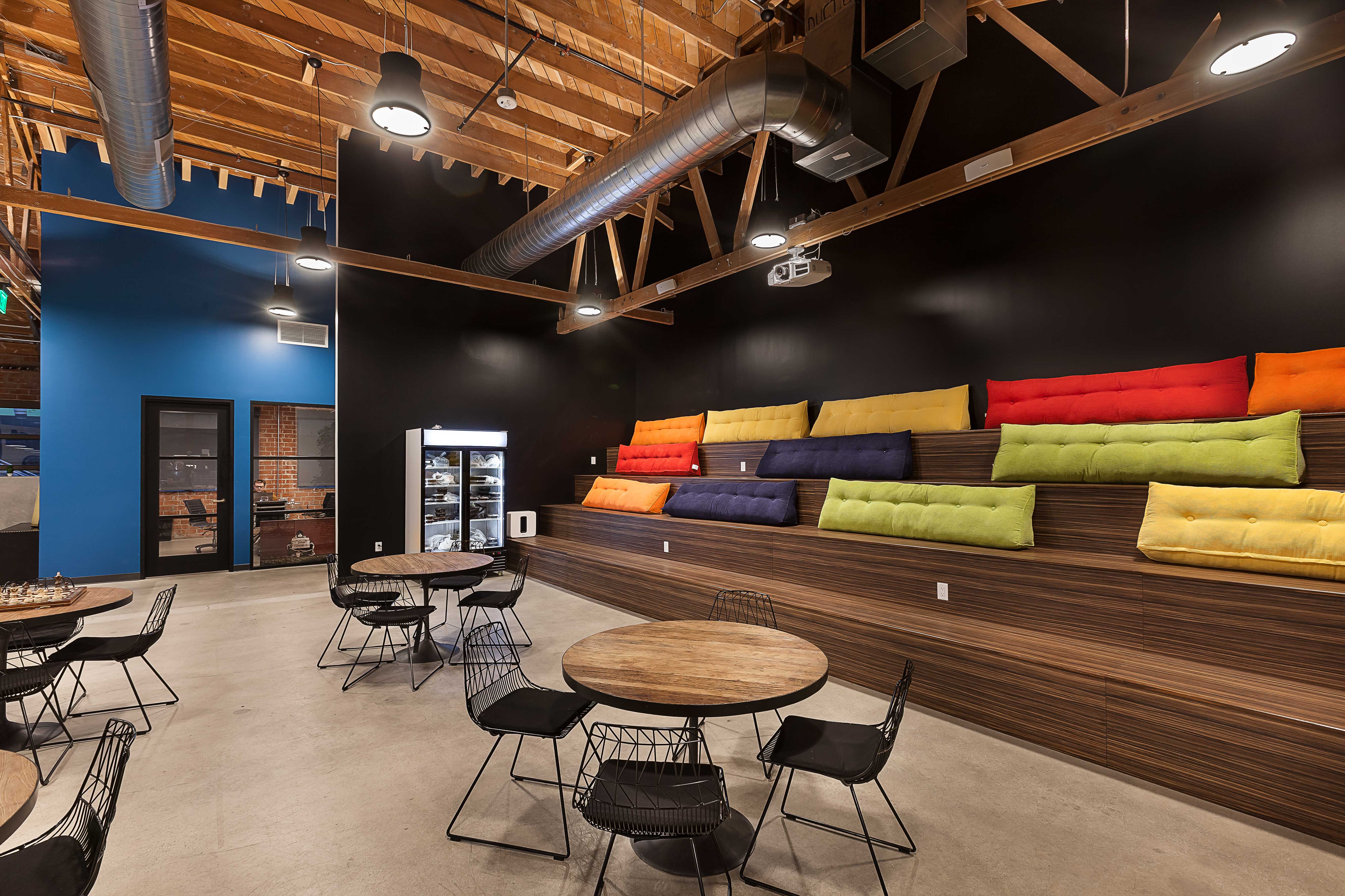 Tenant improvement featuring an open-ceiling design concept that emphasizes volume and flexibility. The scope included the build-out of a new kitchen, lounge, and fitness area, creating amenity-driven spaces that support collaboration, comfort, and wellness.